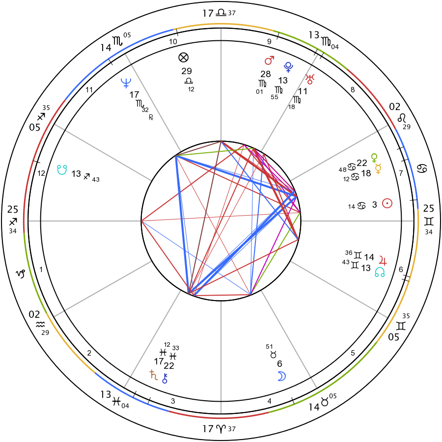 This aspect gives a profound mentality, deepening and concentrating your mind and your powers of speech and communication. You are shrewd in business, and are adaptable to a variety of professions. You like to do things by the book. Long hours of concentration could produce in you a brilliant scholar, or a star of the legal profession. You may feel a sense of isolation and loneliness in your life. Your lesson is to learn faith and to cultivate a positive attitude toward your mental process, restructuring that process along more personal and less rigid lines.